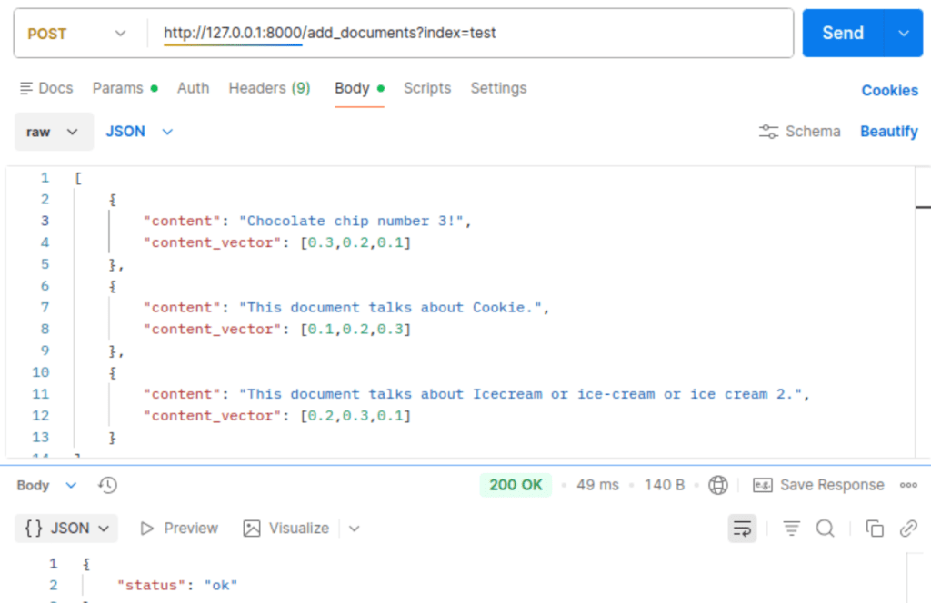 Let’s then add some documents and populate our test index: