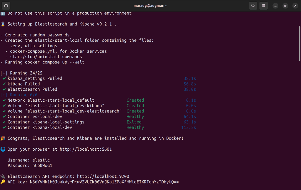 You can visit their documentation (here) to get started. YTo spin up a local environment, simply run:curl -fsSL https://elastic.co/start-local | sh